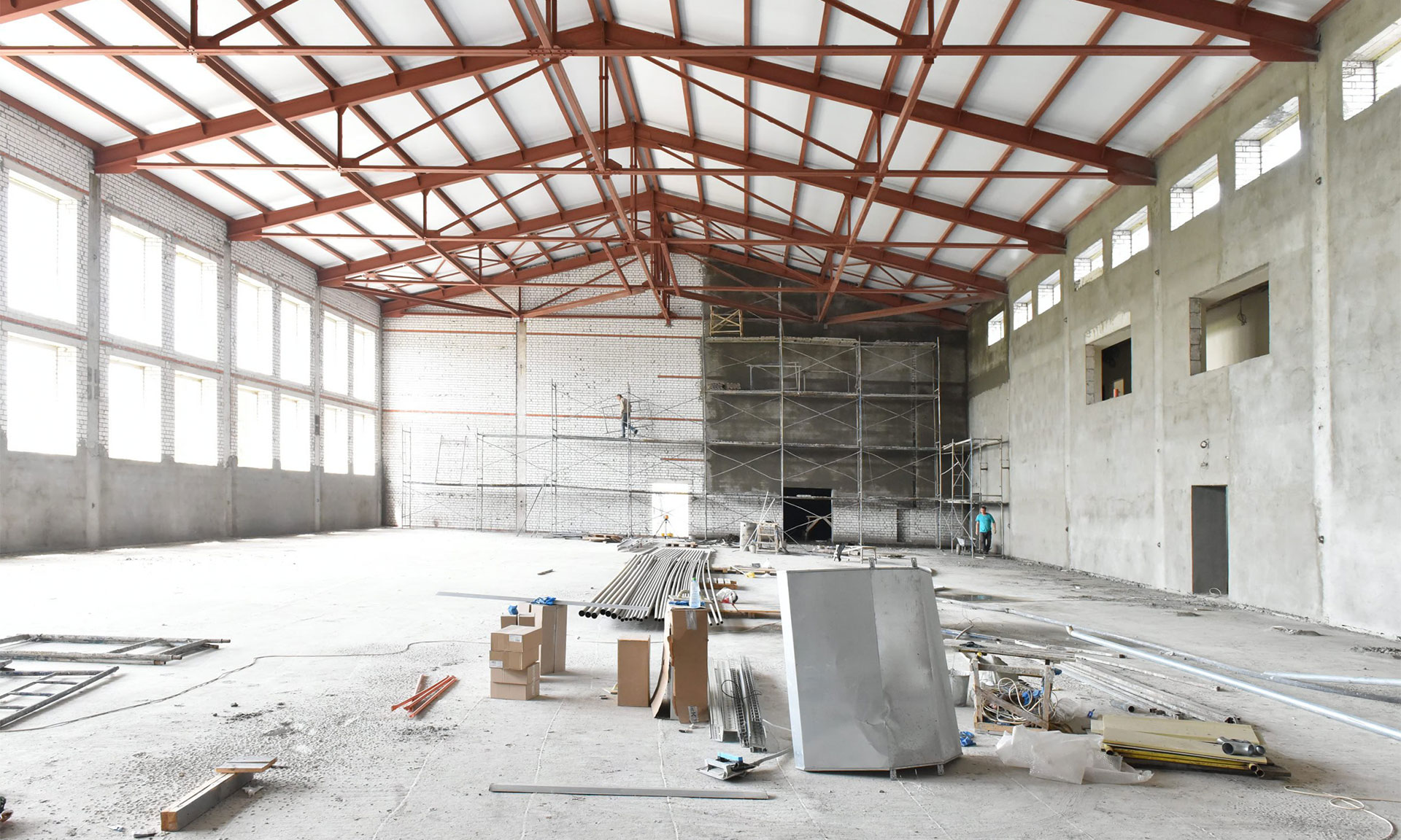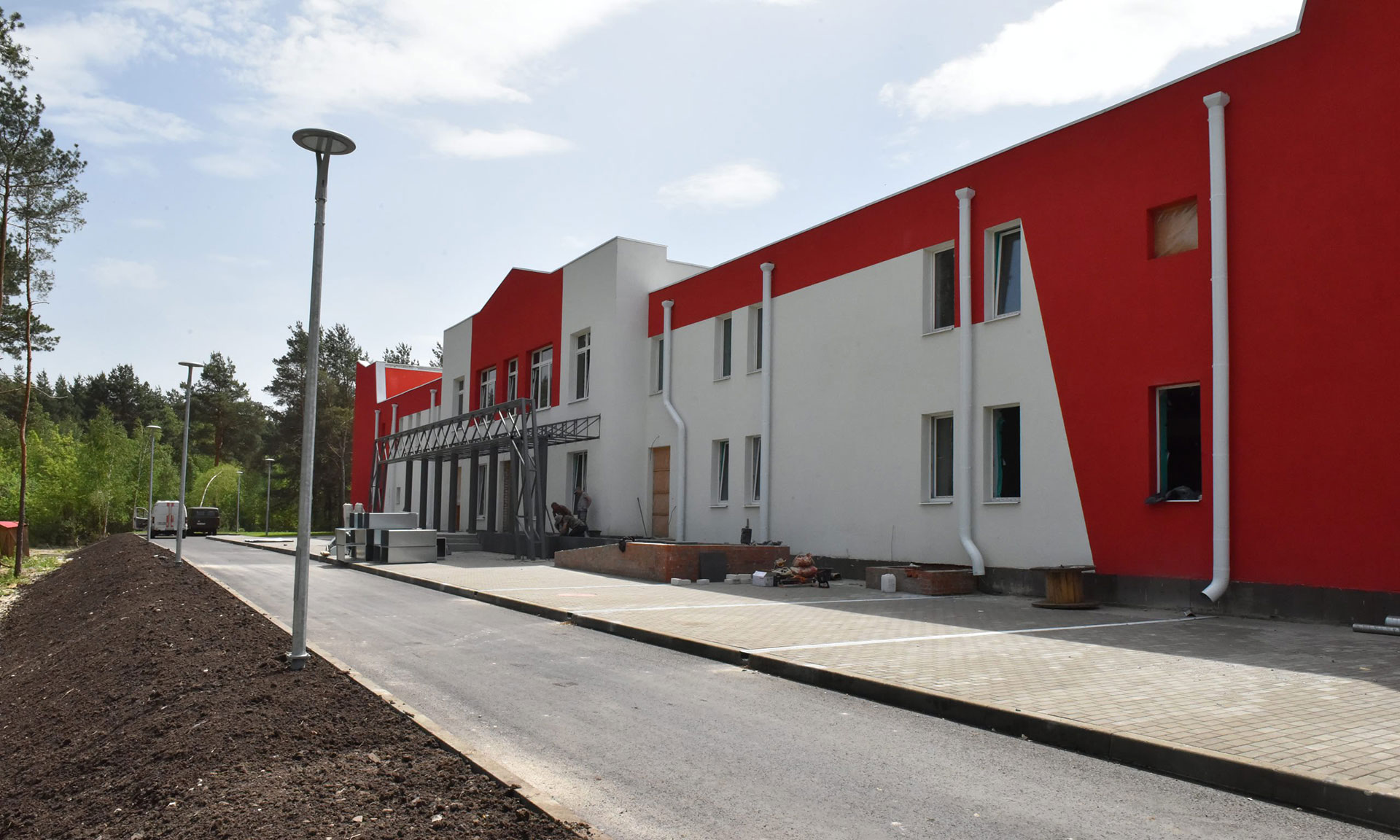Здание спортзала готово, ведутся внутренние отделочные работы, прокладка инженерных сетей, впереди — благоустройство территории.