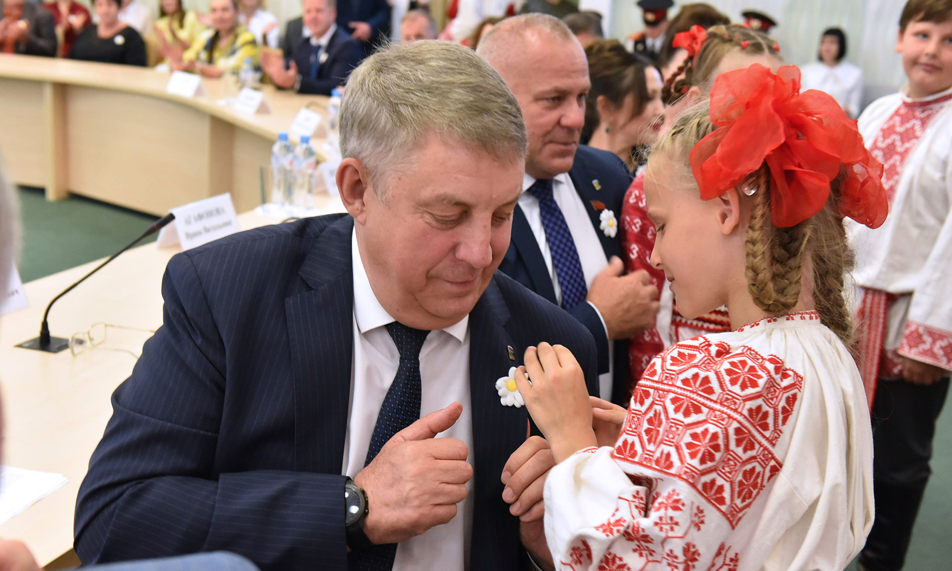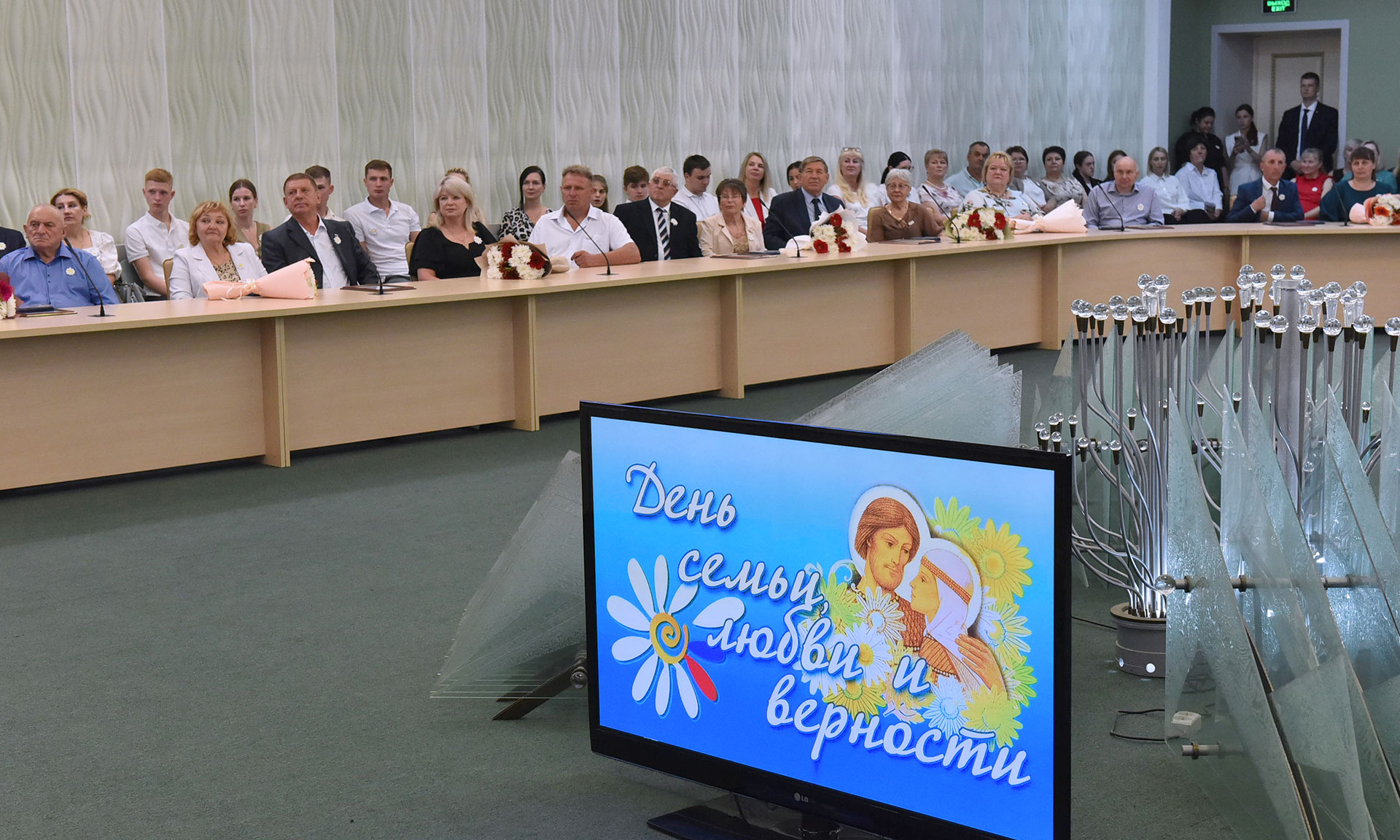 Сегодня в зале присутствовали семейные пары, прожившие в любви и согласии много лет, многодетные пары, семьи, воспитавшие настоящих защитников Родины, и те, кто смог подарить свою любовь не только родным детям, но также взял на воспитание приемных и опекаемых детей.