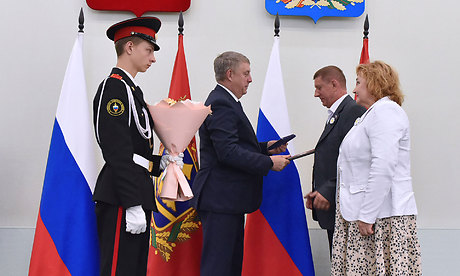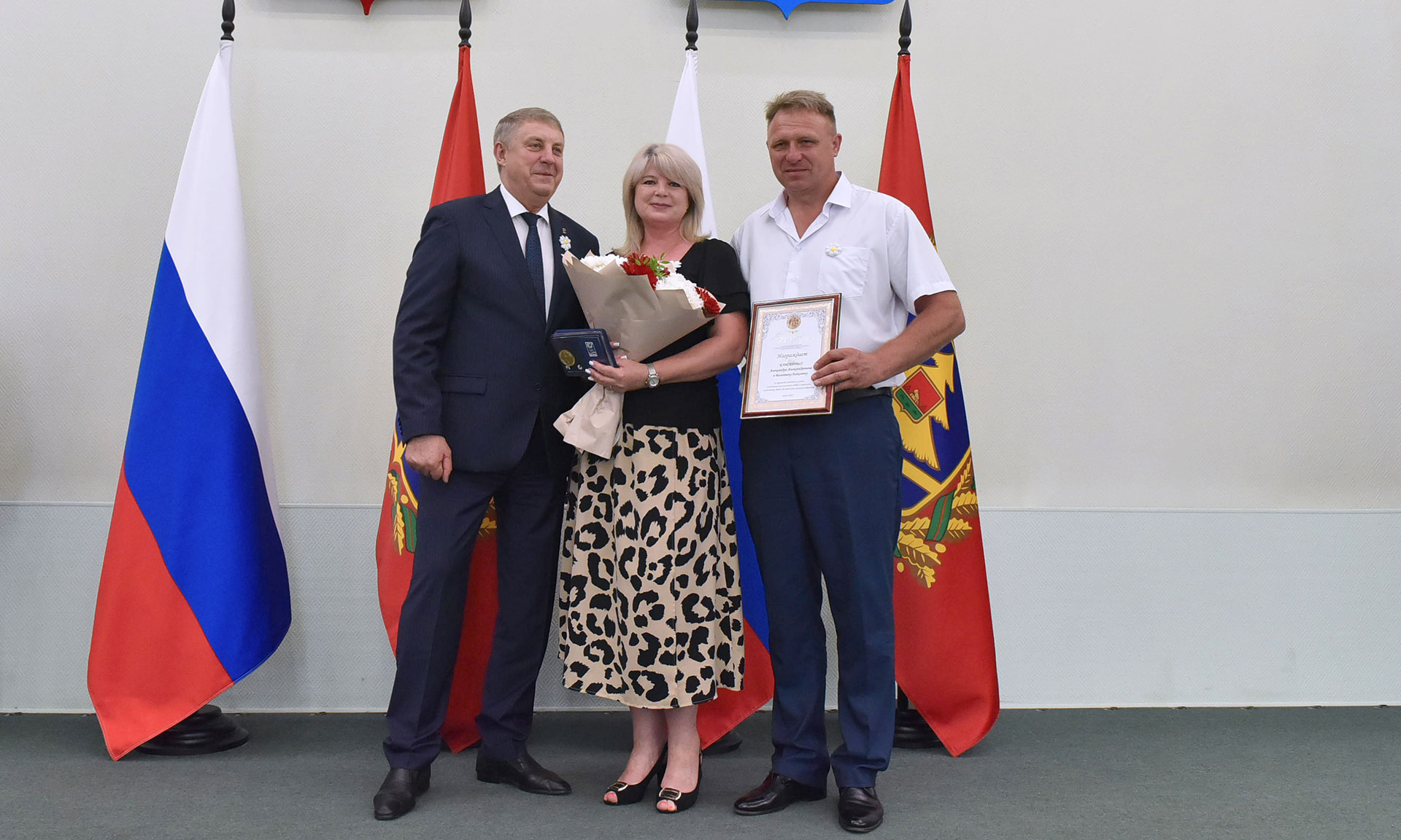 Особые слова признательности мы говорим семьям защитников Отечества — участников cпециальной военной операции. Таких сегодня в зале большинство. Низкий поклон за защиту родной земли! Супруги Чередниченко, Михаил Петрович и Наталья Александровна из Брянска, воспитали троих детей. Их сын Владислав, командир зенитного ракетного взвода, погиб в зоне проведения специальной военной операции, посмертно награжден Орденом Мужества.