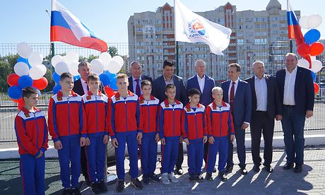Площадка открыта в лучшем спортивном сооружении России 2023 года, Дворце единоборств имени нашего прославленного спортсмена Артема Ивановича Осипенко, который является гордостью Брянской области, нашим «русским медведем», капитаном сборной страны по самбо.