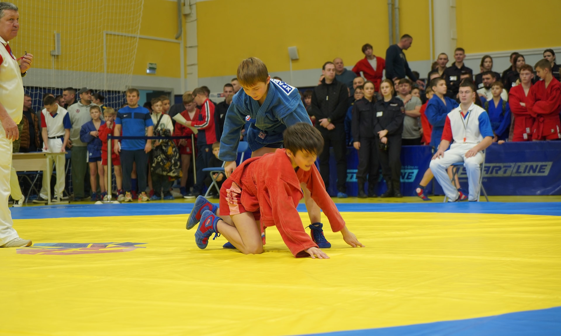 Соревнования проходят в одном из лучших спортивных сооружений нашей страны, во Дворце единоборств имени Артема Ивановича Осипенко. Это еще раз говорит о том, что для того, чтобы воспитать настоящих защитников, нам нужно, чтобы наши дети занимались спортом. И один из таких видов спорта — это, конечно же, самбо, наш национальный вид спорта, самооборона без оружия.