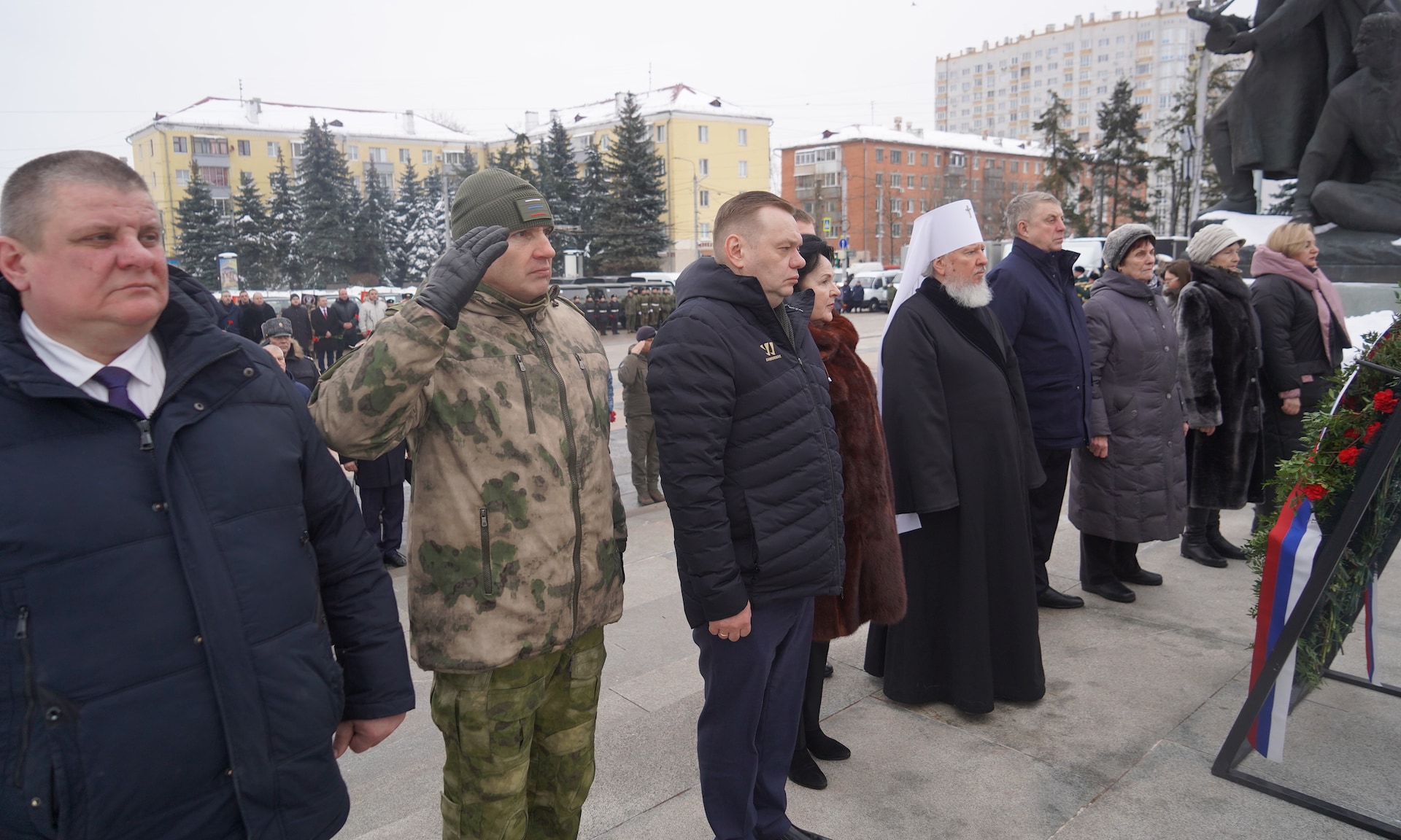 В знак памяти и благодарности воинам, отдавшим жизнь за Отечество, цветы к Вечному огню возложили Губернатор Брянской области Александр Богомаз, заместитель председателя Гомельского облисполкома Республики Беларусь Дмитрий Алейников, Митрополит Брянский и Севский Александр, Герои Российской Федерации Александр Постоялко и Андрей Фроленков, мать Героя Российской Федерации Олега Ермакова Лидия Филипповна Ермакова, мать Героя Российской Федерации Сергея Василева Галина Георгиевна Василева, мать погибшего в Сирии офицера Фёдора Журавлёва Людмила Фёдоровна Журавлёва, мать Дмитрия Седнева, награжденного орденом Мужества посмертно, Марина Николаевна Седнева, председатель Брянской областной Думы Валентин Суббот, главный федеральный инспектор по Брянской области Андрей Сергеевич Дьячук, сенаторы Российской Федерации Василий Попадайло и Вадим Деньгин, председатель комитета по физической культуре и спорту Государственной Думы Федерального Собрания Российской Федерации, депутат Государственной Думы от Брянской области Олег Матыцин, депутат Государственной Думы Федерального Собрания Российской Федерации Николай Щеглов, председатель Брянского областного суда Александр Курганов, прокурор Брянской области Владимир Мосин, начальник управления ФСБ России по Брянской области, Сергей Воронин, начальник управления МВД России по Брянской области Алексей Солдатов, руководитель следственного управления Следственного комитета Российской Федерации по Брянской области Алексей Кузьмичёв, начальник управления Федеральной службы войск национальной гвардии Российской Федерации по Брянской области Иван Ванчугов, начальник главного управления МЧС России по Брянской области Дмитрий Енин, начальник Центра специальной связи и информации Федеральной службы охраны Российской Федерации в Брянской области Олег Бельский, руководитель управления ФНС России по Брянской области Андрей Маркелов, руководители правоохранительных органов и силовых структур Брянской области, руководители федеральных территориальных органов государственной власти Брянской области, заместители Губернатора Брянской области, заместители председателя Брянской областной Думы, руководители города Брянска, делегация Республики Беларусь.